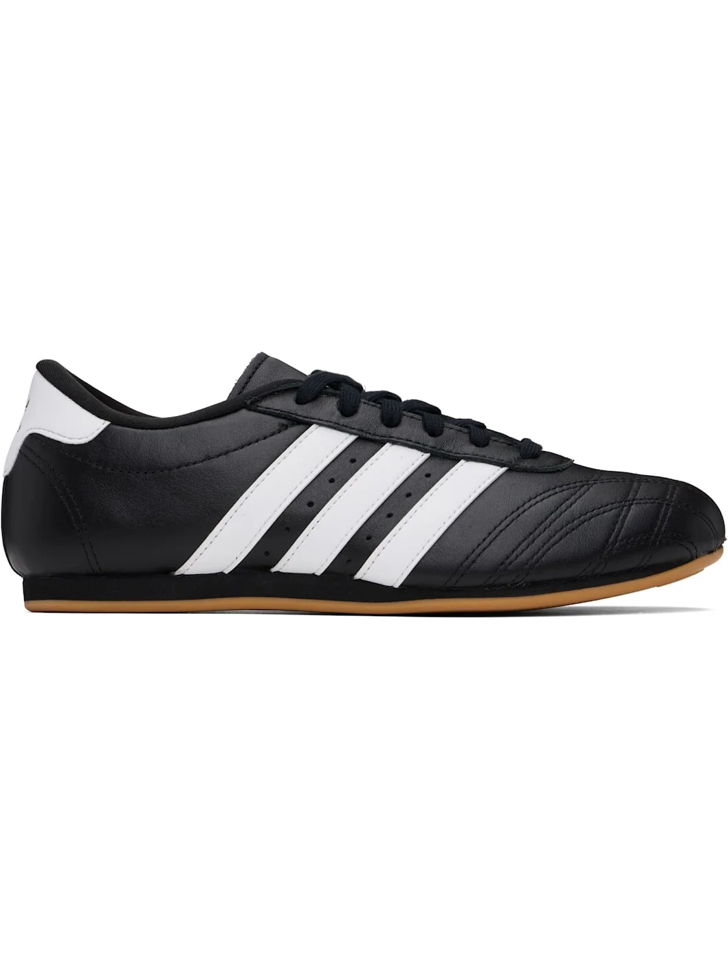 Low-top grained leather sneakers in black. · Lace-up closure · Logo printed at padded tongue · Padded collar · Perforations and signature stripes at sides · Logo embossed at heel tab · Jersey lining · Treaded rubber sole Supplier color: Core black/Core white/Gum