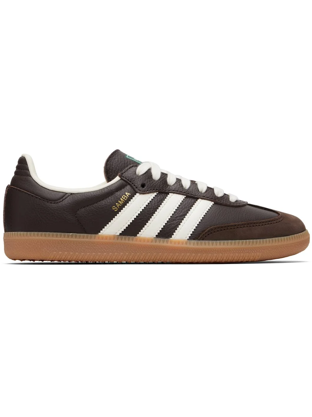 Low-top grained leather and faux-nubuck sneakers. · Lace-up closure · Logo stamp at tongue · Padded collar · Signature serrated stripes at sides · Text stamp at outer side · Quilting at heel tab · Faux-leather lining · Treaded rubber sole Supplier color: Dark Brown/Off White/Gum Upper: leather, synthetic. Sole: rubber. Made in Viet Nam 252751M237085