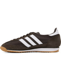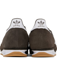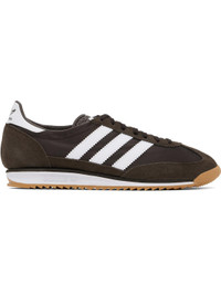 Low-top canvas and suede sneakers in brown. · Lace-up closure · Logo printed at perforated and textured tongue · Padded heel collar · Signature serrated stripes at sides · Logo embossed at heel tab · Buffed faux-leather and mesh lining · Logo bonded at midsole · Treaded rubber sole Supplier color: Dark brown Upper: leather, textile. Sole: rubber. Made in Indonesia 251751M237222