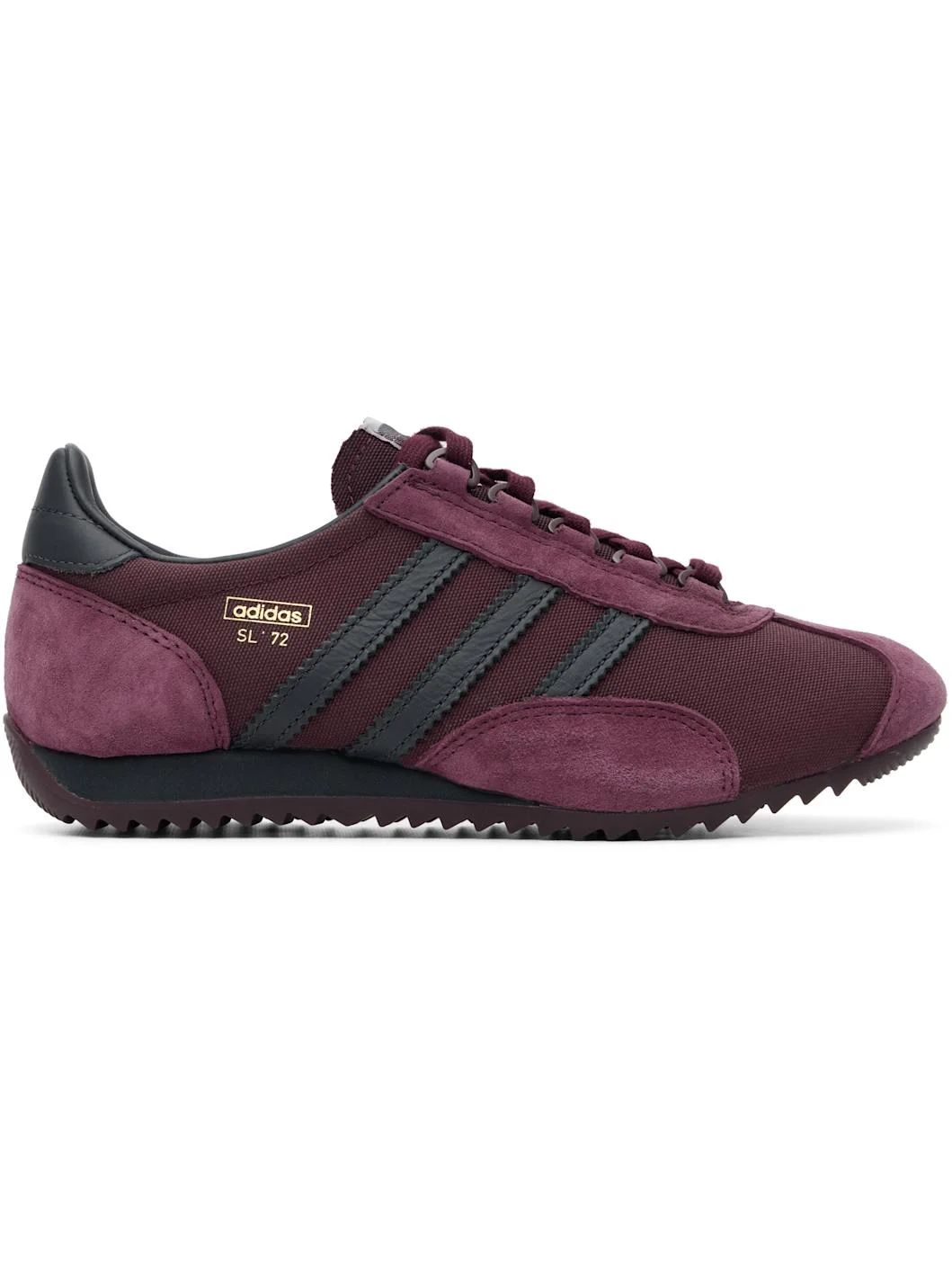 Low-top suede sneakers. · Lace-up closure · Logo patch at padded tongue · Padded collar · Signature serrated stripes at sides · Logo and text stamp at outer side · Mesh lining · Foam rubber midsole · Treaded rubber sole Supplier color: Shadow red/Carbon/Maroon Upper: leather. Sole: rubber. Made in Viet Nam 261751M237192