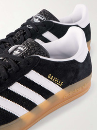 adidas Originals' latest 'Gazelle Indoor' sneakers have geometric quilted tongues that add an extra dimension of texture. Inspired by archival styles from the '70s, they're made from suede with rubber soles and faux leather '3-Stripe' emblems at the sides. Size & Fit - UK 3.5 = US 4/ EU 36 - UK 4 = US 4.5/ EU 36.7 - UK 4.5 = US 5/ EU 37.3 - UK 5 = US 5.5/ EU 38 - UK 5.5 = US 6/ EU 38.7 - UK 6 = US 6.5/ EU 39.3 - UK 6.5 = US 7/ EU 40 - UK 7 = US 7.5/ EU 40.7 - UK 7.5 = US 8/ EU 41.3 - UK 8 = US 8.5/ EU 42 - UK 8.5 = US 9/ EU 42.7 - UK 9 = US 9.5/ EU 43.3 - UK 9.5 = US 10/ EU 44 - UK 10 = US 10.5/ EU 44.7 - UK 10.5 = US 11/ EU 45.3 - UK 11 = US 11.5/ EU 46 - UK 11.5 = US 12/ EU 46.7 - UK 12 = US 12.5/ EU 47.3 - UK 12.5 = US 13/ EU 48 - UK 13 = US 13.5/ EU 48.7 - UK 13.5 = US 14/ EU 49.3 - UK 14 = US 14.5/ EU 50 Details & Care - Black suede (Cow), white faux leather - Lace-up - Designer colour: Core Black/ FTWR White/ Gum 2 - Style number: IH5484 - adidas Originals follows its own size guide, therefore the size stated on the box will differ from the one provided in our size chart. To receive your correct fit, please refer to Size & Fit notes