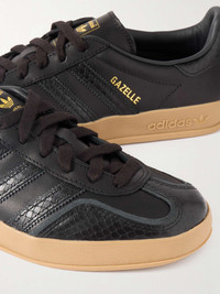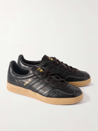 adidas Originals' 'Gazelle Indoor' shoes revive an archival silhouette from 1979, retaining all the details that are beloved by sneakerheads. Grounded on a logo-stamped rubber sole, this low-top pair is made from black leather. They're decorated with croc-effect stripes and gold lettering. Size & Fit - UK 3.5 = US 4/ EU 36 - UK 4 = US 4.5/ EU 36.7 - UK 4.5 = US 5/ EU 37.3 - UK 5 = US 5.5/ EU 38 - UK 5.5 = US 6/ EU 38.7 - UK 6 = US 6.5/ EU 39.3 - UK 6.5 = US 7/ EU 40 - UK 7 = US 7.5/ EU 40.7 - UK 7.5 = US 8/ EU 41.3 - UK 8 = US 8.5/ EU 42 - UK 8.5 = US 9/ EU 42.7 - UK 9 = US 9.5/ EU 43.3 - UK 9.5 = US 10/ EU 44 - UK 10 = US 10.5/ EU 44.7 - UK 10.5 = US 11/ EU 45.3 - UK 11 = US 11.5/ EU 46 - UK 11.5 = US 12/ EU 46.7 - UK 12 = US 12.5/ EU 47.3 - UK 12.5 = US 13/ EU 48 - UK 13 = US 13.5/ EU 48.7 - UK 13.5 = US 14/ EU 49.3 - UK 14 = US 14.5/ EU 50 Details & Care - Black leather and croc-effect leather (Cow) - Lace-up - Designer colour: Core Black/ Core Black/ Gum - Style number: IF1978 - adidas Originals follows its own size guide, therefore the size stated on the box will differ from the one provided in our size chart. To receive your correct fit, please refer to Size & Fit notes
