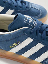 adidas Originals' 'Gazelle Indoor' sneakers are inspired by archival styles from the '70s. Made from brushed synthetic material, they're set on rubber soles and decorated with signature '3-Stripe' emblems at the sides. Size & Fit Fits true to size, please refer to Adidas size guide below: - UK 3.5 = US 4/ EU 36 - UK 4 = US 4.5/ EU 36.7 - UK 4.5 = US 5/ EU 37.3 - UK 5 = US 5.5/ EU 38 - UK 5.5 = US 6/ EU 38.7 - UK 6 = US 6.5/ EU 39.3 - UK 6.5 = US 7/ EU 40 - UK 7 = US 7.5/ EU 40.7 - UK 7.5 = US 8/ EU 41.3 - UK 8 = US 8.5/ EU 42 - UK 8.5 = US 9/ EU 42.7 - UK 9 = US 9.5/ EU 43.3 - UK 9.5 = US 10/ EU 44 - UK 10 = US 10.5/ EU 44.7 - UK 10.5 = US 11/ EU 45.3 - UK 11 = US 11.5/ EU 46 - UK 11.5 = US 12/ EU 46.7 - UK 12 = US 12.5/ EU 47.3 - UK 12.5 = US 13/ EU 48 - UK 13 = US 13.5/ EU 48.7 - UK 13.5 = US 14/ EU 49.3 - UK 14 = US 14.5/ EU 50 Details & Care - Navy and ivory brushed synthetic material - Lace-up - Designer colour: Night Indigo/ Off-White - Style number: JQ8393 - adidas Originals follows its own size guide, therefore the size stated on the box will differ from the one provided in our size chart. To receive your correct fit, please refer to Size & Fit notes