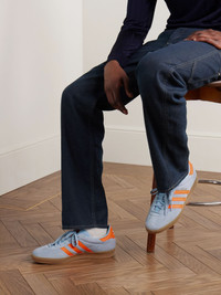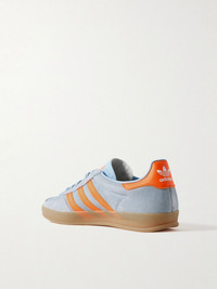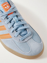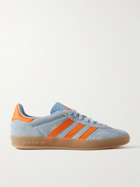 adidas Originals' 'Gazelle Indoor' sneakers recall an archival style from 1979. Made from leather-trimmed suede, they're topped with the house's signature ‘3-Stripes’ and set on logo-stamped rubber soles. The sky-blue and bright-orange colourway will brighten up any outfit. Size & Fit Fits true to size, please refer to Adidas size guide below: - UK 3.5 = US 4/ EU 36 - UK 4 = US 4.5/ EU 36.7 - UK 4.5 = US 5/ EU 37.3 - UK 5 = US 5.5/ EU 38 - UK 5.5 = US 6/ EU 38.7 - UK 6 = US 6.5/ EU 39.3 - UK 6.5 = US 7/ EU 40 - UK 7 = US 7.5/ EU 40.7 - UK 7.5 = US 8/ EU 41.3 - UK 8 = US 8.5/ EU 42 - UK 8.5 = US 9/ EU 42.7 - UK 9 = US 9.5/ EU 43.3 - UK 9.5 = US 10/ EU 44 - UK 10 = US 10.5/ EU 44.7 - UK 10.5 = US 11/ EU 45.3 - UK 11 = US 11.5/ EU 46 - UK 11.5 = US 12/ EU 46.7 - UK 12 = US 12.5/ EU 47.3 - UK 12.5 = US 13/ EU 48 - UK 13 = US 13.5/ EU 48.7 - UK 13.5 = US 14/ EU 49.3 - UK 14 = US 14.5/ EU 50 Details & Care - Sky-blue suede, bright-orange and white leather (Cow) - Lace-up - Style number: JH5405 - Designer colour: Wonder Blue/ Orange - adidas Originals follows its own size guide, therefore the size stated on the box will differ from the one provided in our size chart. To receive your correct fit, please refer to Size & Fit notes