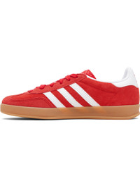 Low-top suede sneakers. · Lace-up closure · Logo printed at textured tongue · Padded collar · Text stamp at outer side · Signature serrated stripes at sides · Logo printed at heel tab · Jersey lining · Treaded rubber sole · Includes alternate laces Supplier color: Better scarlet/Cloud white/Gum Upper: leather. Sole: rubber. Made in Viet Nam 252751M237165