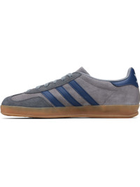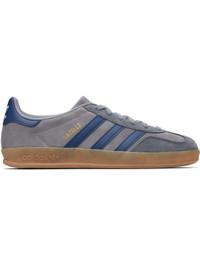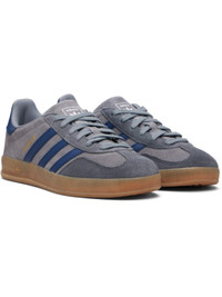 Low-top suede and buffed faux-leather sneakers. · Lace-up closure · Logo stamp at padded tongue · Padded collar · Text stamp at outer side · Signature serrated stripes at sides · Buffed faux-leather lining · Logo-embossed semi-transparent rubber midsole · Treaded rubber sole Supplier color: Grey/Night indigo/Grey five Upper: leather, synthetic. Sole: rubber. Made in Indonesia 252751M237207