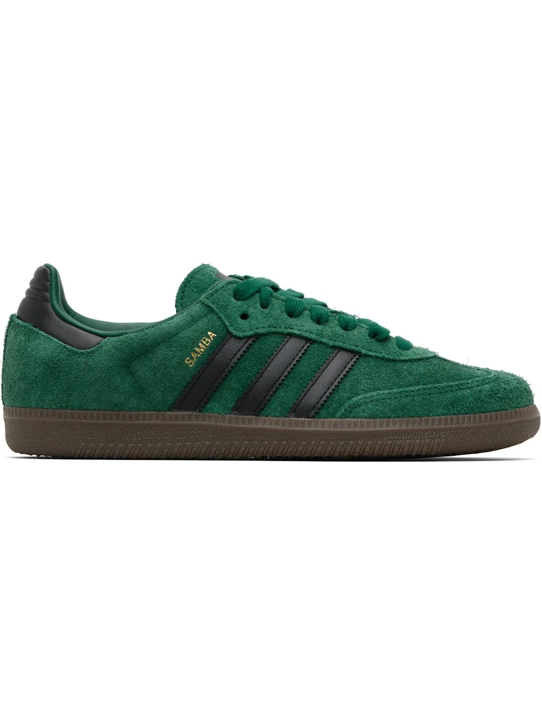 Low-top suede sneakers. · Lace-up closure · Logo printed at tongue · Serrated leather stripes at sides · Text printed at side · Leather heel tab · Treaded rubber sole Supplier color: Collegiate Green/Core Black/Gum Upper: leather. Sole: rubber. Made in Viet Nam 261751M237148