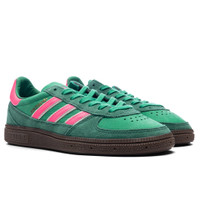 Inspired by the iconic shoe designed for the rigorous indoor game, the adidas Handball Spezial offers a look and feel informed by the past and in touch with today's sportswear style. Made from nubuck, the silhouette stands out with durable suede overlays along the toe and mudguard and leather 3-Stripes. A rubber outsole with rugged traction provides the base, and two-tone 3-Stripes and gold-letter Spezial branding finished the look. 3-Stripes - Nubuck upper - Suede overlays - Lace-up closure - 3-Stripes - Gold foil lettering - Padded collar - Rubber outsole - All sizes are listed in US Men's sizing unless stated otherwise - Style No: JH5454