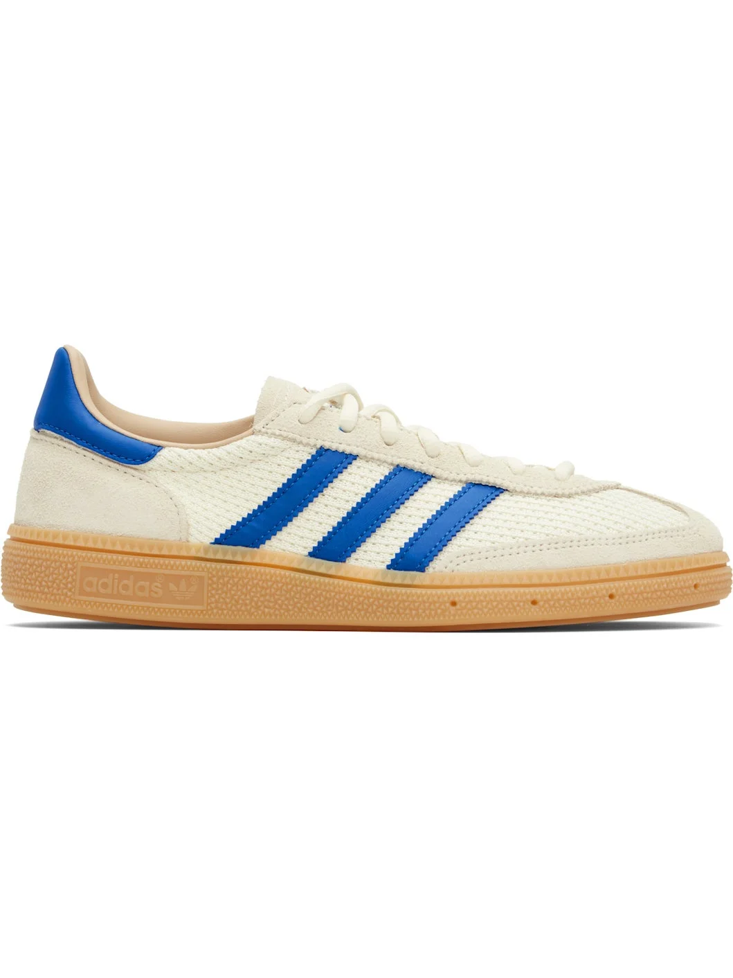 Low-top mesh and suede sneakers. · Lace-up closure · Logo patch at tongue · Padded collar · Signature serrated stripes at sides · Mesh lining · Treaded rubber sole Supplier color: Cream white/Blue/Warm sandstone Upper: leather, textile. Sole: rubber. Made in Indonesia 252751M237156