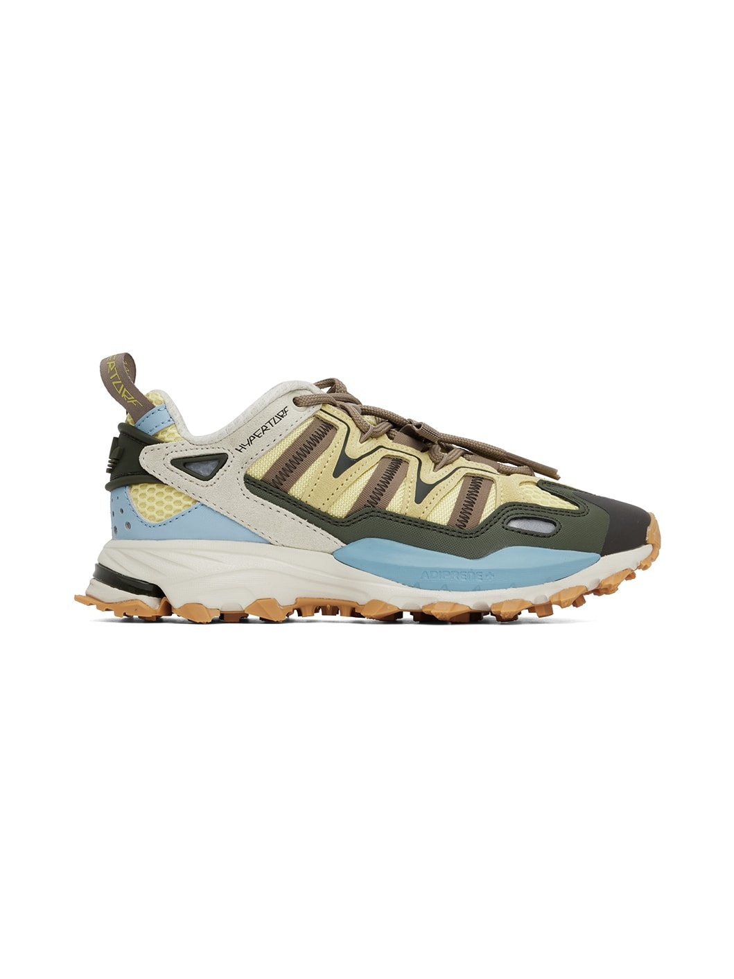 Low-top paneled ripstop, nubuck, suede and mesh sneakers in multicolor. Rubberized trim throughout. · Bungee-style lace-up closure · Logo flocked at padded tongue · Grosgrain pull-loop at heel collar · Rubberized logo appliqué at heel tab · Mesh lining in gray · Adiprene+ and FORMATION EVA rubber midsole · Treaded rubber outsole Supplier color: Almost yellow/Clear blue/Shadow olive Upper: leather, textile, synthetic. Sole: rubber.
