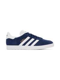 Low-top nubuck sneakers in black and white. · Lace-up closure · Logo embossed at padded tongue and heel tab · Padded collar · Text stamp at outer side · Signature serrated stripes at sides · Logo printed at heel counter · Padded OrthoLite® footbed · Buffed faux-leather lining · Treaded rubber sole Supplier color: Core black/White/Gold metallic