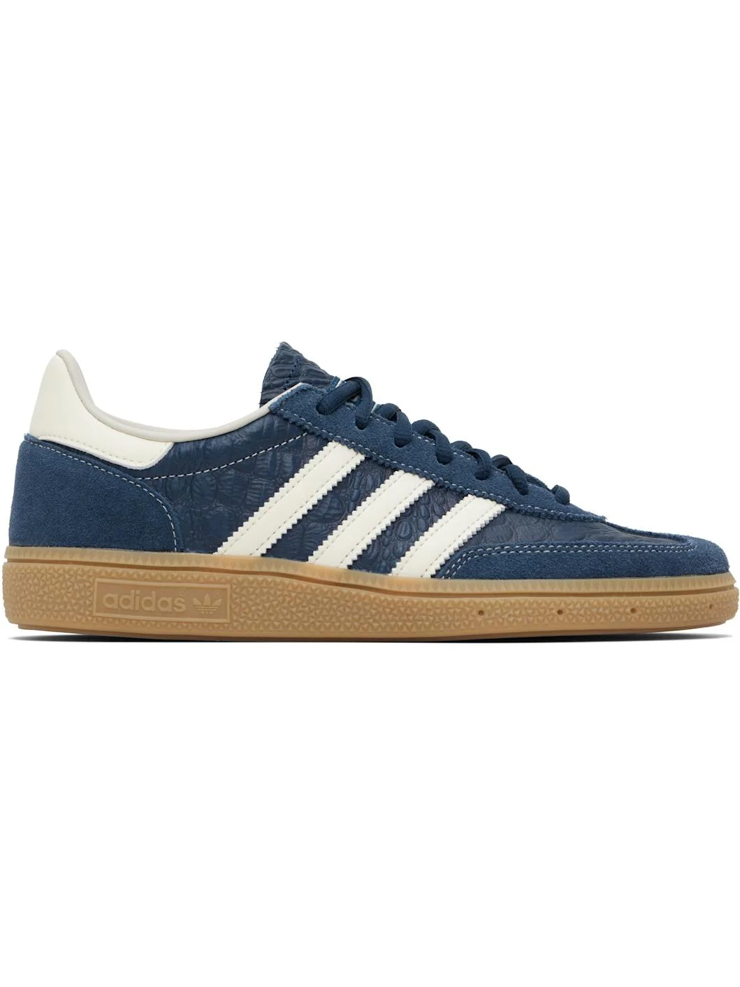 Low-top suede and croc-embossed leather sneakers. · Lace-up closure · Logo patch at tongue · Serrated stripes at sides · Padded collar · Buffed leather and mesh lining · Logo embossed at textured rubber midsole · Treaded rubber sole · Alternate laces in off-white included Supplier color: Night Indigo/Cream White/Gum Upper: leather, textile. Sole: rubber. Made in Viet Nam 261751M237110