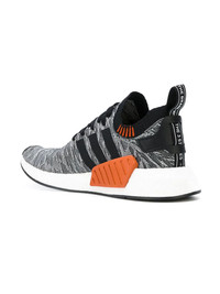 adidas Originals NMD_R2 Primeknit sneakers Some of the best NMD releases have come when adidas experiments with the design on the Primeknit. Released summer 2017, this NMD R2 sports an updated pattern created with a Shadow Knit technique that gives off the appearance that colors are shifting. This black and white colorway has an oreo-like look. The Three Stripes overlay, ankle collar, and heel tab appears in black. A vibrant red appears on the EVA midsole plug inserted on the medial side and a portion of the ankle. Full-length Boost cushioning is responsive in how it returns all of the energy you give. A black outsole completes the slick shoe. Imported Composition Outer: Citrus Aurantium Dulcis (Orange) Peel Oil 100% Lining: Nylon 100% Sole: Rubber 100%