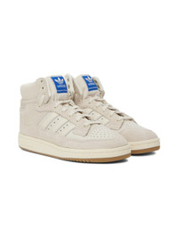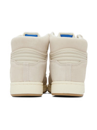 High-top suede and buffed leather sneakers in off-white. Perforated detailing throughout. · Lace-up closure · Textile logo flag at padded tongue · Padded collar · Stripe appliqués at sides · Logo embossed at outer side · Logo embossed at textured rubber outsole · Treaded rubber outsole Supplier color: Off white/Chalk white/Wonder white