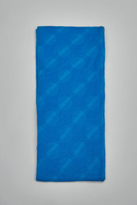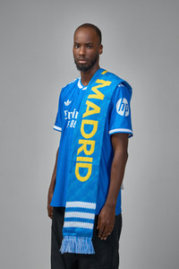 Real Madrid scarf in vibrant blue knit featuring a tonal diagonal jacquard pattern. The piece is presented flat in a long rectangular shape, showing knitted texture and clean stitched edges. Materials: 100% Acrylic Color: blubird SKU: 153767 Brand style: JX3216