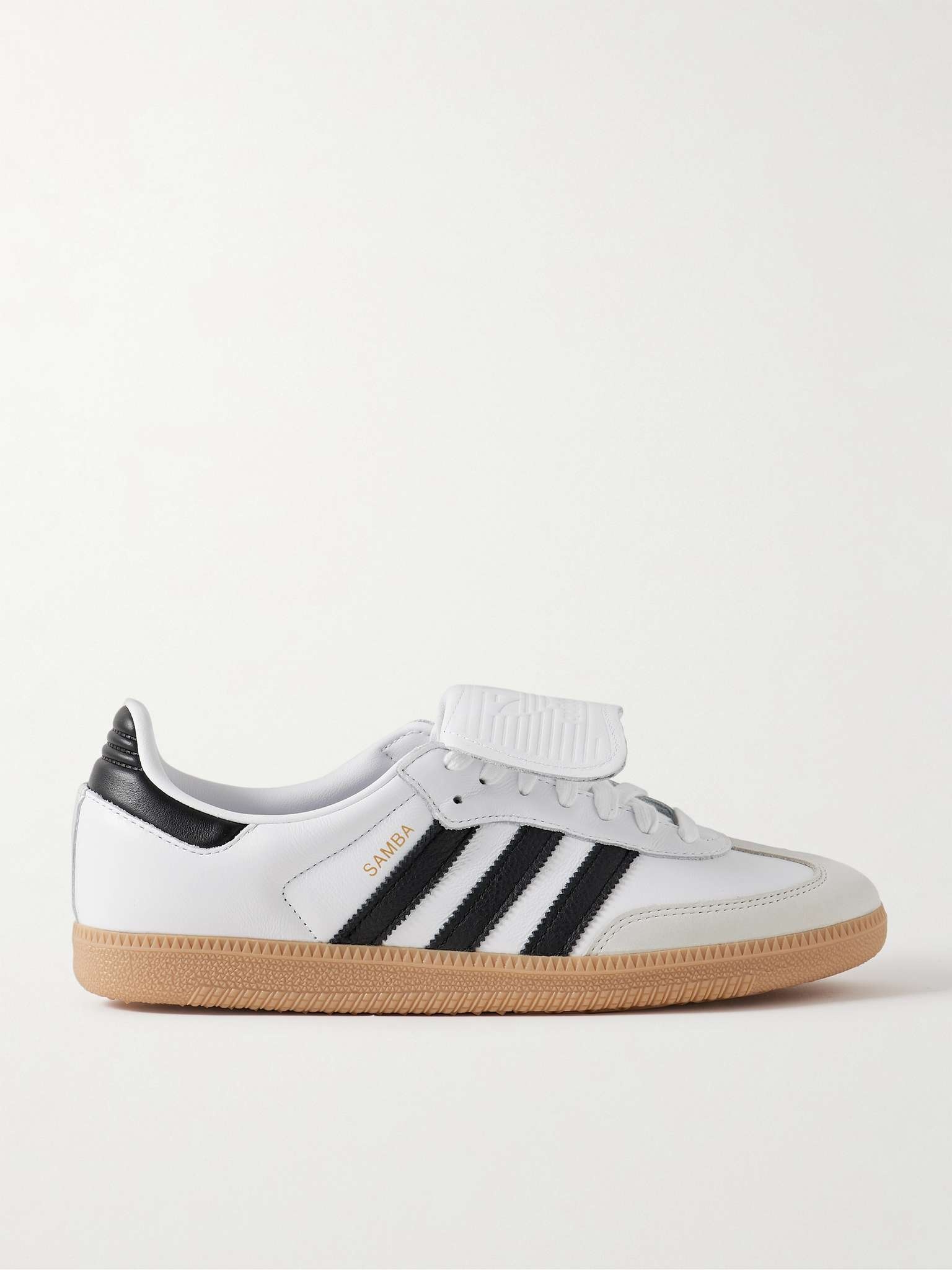 Inspired by retro American football styles, adidas Originals' 'Samba LT' sneakers are defined by their dramatic fold-over tongues. Made from leather and nubuck, they feature '3-Stripes' and 'Trefoil' logos and gummed rubber soles. Wear them with everything from jeans to relaxed tailoring. Size & Fit - UK 3.5 = Men’s US 4 (Women’s US 5)/ EU 36 - UK 4 = Men’s US 4.5 (Women’s US 5.5)/ EU 36.7 - UK 4.5 = Men’s US 5 (Women’s US 6)/ EU 37.3 - UK 5 = Men’s US 5.5 (Women’s US 6.5)/ EU 38 - UK 5.5 = Men’s US 6 (Women’s US 7)/ EU 38.7 - UK 6 = Men’s US 6.5 (Women’s US 7.5)/ EU 39.3 - UK 6.5 = Men’s US 7 (Women’s US 8)/ EU 40 - UK 7 = Men’s US 7.5 (Women’s US 8.5)/ EU 40.7 - UK 7.5 = Men’s US 8 (Women’s US 9)/ EU 41.3 - UK 8 = Men’s US 8.5 (Women’s US 9.5)/ EU 42 - UK 8.5 = Men’s US 9 (Women’s US 10)/ EU 42.7 - UK 9 = Men’s US 9.5 (Women’s US 10.5)/ EU 43.3 - UK 9.5 = Men’s US 10 (Women’s US 11)/ EU 44 - UK 10 = Men’s US 10.5 (Women’s US 11.5)/ EU 44.7 - UK 10.5 = Men’s US 11 (Women’s US 12)/ EU 45.3 - UK 11 = Men’s US 11.5 (Women’s US 12.5)/ EU 46 - UK 11.5 = Men’s US 12 (Women’s US 13)/ EU 46.7 - UK 12 = Men’s US 12.5 (Women’s US 13.5)/ EU 47.3 - UK 12.5 = Men’s US 13 (Women’s US 14)/ EU 48 - UK 13 = Men’s US 13.5 (Women’s US 14.5)/ EU 48.7 - UK 13.5 = Men’s US 14 (Women’s US 15 )/ EU 49. - UK 14 = Men’s US 14.5 (Women’s US 15.5)/ EU 50 - Packaging reflects women’s sizing Details & Care - White and black leather, light-grey nubuck - Lace-up - Style number: IG4279 - adidas Originals follows its own size guide, therefore the size stated on the box will differ from the one provided in our size chart. To receive your correct fit, please refer to Size & Fit notes