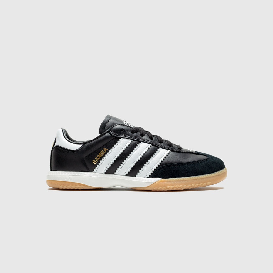 - IF1952 - CBlack/FtwWht/Gum3 - Leather upper - Suede overlays - Leather three-stripe branding across the lateral and medial sidewalls - Leather tongue with embroidered branding - Printed "SAMBA" at the side heel - Leather heel with embroidered branding - Lace closure - EVA midsole - Gum rubber outsole