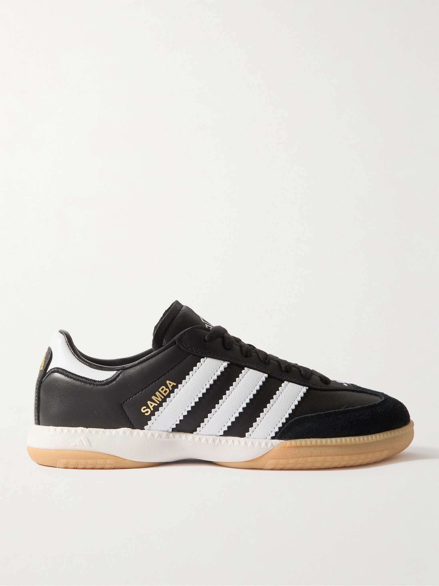 adidas Originals 'Samba MN' sneakers are for far more than futsal – they'll work for a trip to the pub or a stroll about town, too. The uppers are made from leather and suede, while the soles are grippy gum rubber, a signature of indoor football shoes. Size & Fit - UK 3.5 = US 4/ EU 36 - UK 4 = US 4.5/ EU 36.7 - UK 4.5 = US 5/ EU 37.3 - UK 5 = US 5.5/ EU 38 - UK 5.5 = US 6/ EU 38.7 - UK 6 = US 6.5/ EU 39.3 - UK 6.5 = US 7/ EU 40 - UK 7 = US 7.5/ EU 40.7 - UK 7.5 = US 8/ EU 41.3 - UK 8 = US 8.5/ EU 42 - UK 8.5 = US 9/ EU 42.7 - UK 9 = US 9.5/ EU 43.3 - UK 9.5 = US 10/ EU 44 - UK 10 = US 10.5/ EU 44.7 - UK 10.5 = US 11/ EU 45.3 - UK 11 = US 11.5/ EU 46 - UK 11.5 = US 12/ EU 46.7 - UK 12 = US 12.5/ EU 47.3 - UK 12.5 = US 13/ EU 48 - UK 13 = US 13.5/ EU 48.7 - UK 13.5 = US 14/ EU 49.3 - UK 14 = US 14.5/ EU 50 - Packaging reflects both men’s and women’s sizing Details & Care - Black and white leather (Cow), black suede - Lace-up - Style number: IF1952 - adidas Originals follows its own size guide, therefore the size stated on the box will differ from the one provided in our size chart. To receive your correct fit, please refer to Size & Fit notes