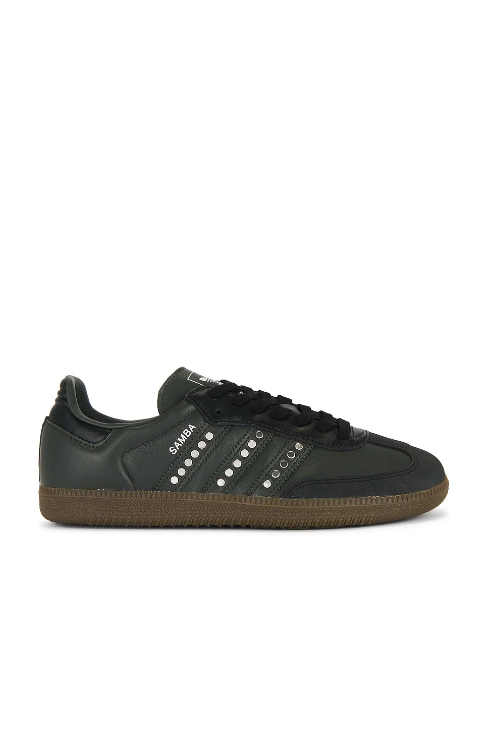 Details - Leather upper with rubber gum sole - Lace-up front - Cushioned textile footbed - Signature three stripes with studded silver-tone disc detailing at side panels - Foiled SAMBAS logo at outer panel - Foiled adidas logo at tongue - Made in Vietnam - Our Style No. ADIO-MZ408 - Manufacturer Style No. JR8869