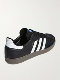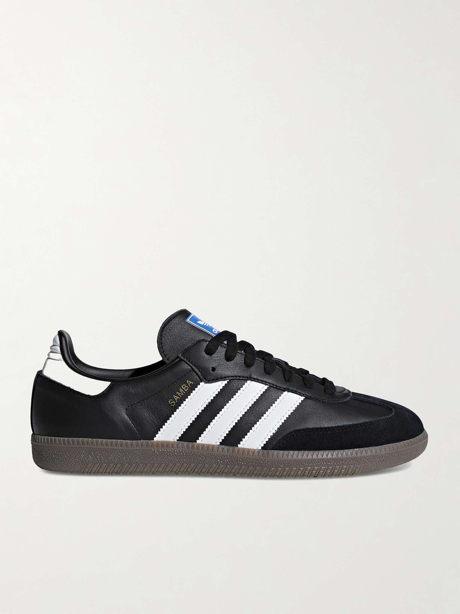 One of the best-selling shoes of all time, adidas Originals' 'Samba' sneakers were first designed for football players in 1949. This 'OG' pair is made from panels of black suede and leather and detailed with the signature '3-Stripes' at the sides. Size & Fit Fits true to size, please refer to Adidas size guide below: - UK 3.5 = US 4/ EU 36 - UK 4 = US 4.5/ EU 37 - UK 4.5 = US 5/ EU 37.5 - UK 5 = US 5.5/ EU 38 - UK 5.5 = US 6/ EU 39 - UK 6 = US 6.5/ EU 39.5 - UK 6.5 = US 7/ EU 40 - UK 7 = US 7.5/ EU 41 - UK 7.5 = US 8/ EU 41.5 - UK 8 = US 8.5/ EU 42 - UK 8.5 = US 9/ EU 43 - UK 9 = US 9.5/ EU 43.5 - UK 9.5 = US 10/ EU 44 - UK 10 = US 10.5/ EU 45 - UK 10.5 = US 11/ EU 45.5 - UK 11 = US 11.5/ EU 46 - UK 11.5 = US 12/ EU 47 - UK 12 = US 12.5/ EU 47.5 - UK 12.5 = US 13/ EU 48 - UK 13 = US 13.5/ EU 49 - UK 13.5 = US 14/ EU 49.5 - UK 14 = US 14.5/ EU 50 Details & Care - Black and white leather (Cow), black suede - Lace-up - Style number: B75807 - adidas Originals follows its own size guide, therefore the size stated on the box will differ from the one provided in our size chart. To receive your correct fit, please refer to Size & Fit notes