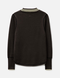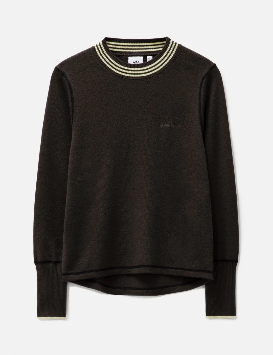 - Adidas Originals - Wales Bonner Long Sleeve Knit Top - Adidas Originals x Wales Bonner collaborative collection - Soft premium Merino wool blend fabric - Ribbed crewneck - Elongated ribbed cuffs - Droptail hem - Color: Dark Brown - Material: 100% Recycled Polyester - See more T-Shirts and Clothing SIZING - Model wears size M - Model measures: Height 187cm, Chest 36”/91cm, Waist 29”/74cm, Hip 37”/94cm