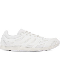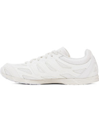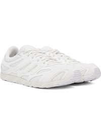 Low-top mesh and textured faux-leather sneakers in white. · Bonded trim throughout · Perforated detailing at toe and heel · Lace-up closure · Logo applique at tongue · Padded tongue and collar · Signature stripes at sides · Logo applique at heel counter · Mesh lining · Treaded rubber sole Supplier color: Crystal white/Cloud white/Cloud white Upper: textile, synthetic. Sole: rubber. Made in Viet Nam 251751M237177