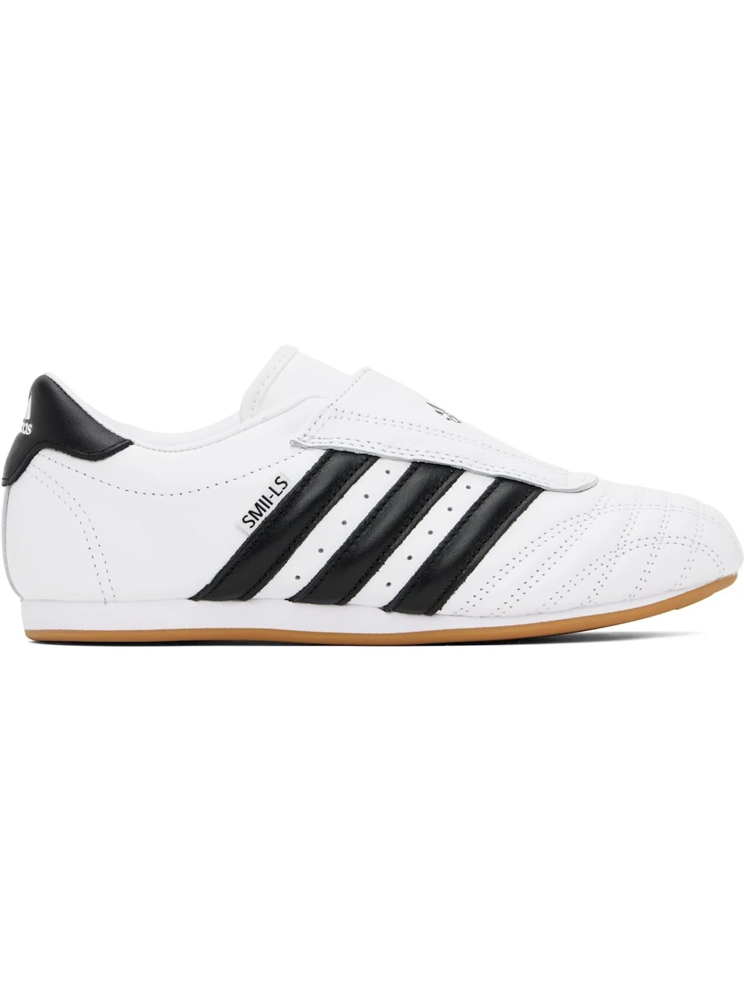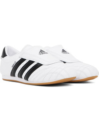 Low-top buffed leather sneakers in white. · Quilted detailing at toe · Logo embossed at vamp and heel tab · Concealed elasticized gusset · Padded collar · Signature stripes and perforations at sides · Buffed leather and mesh lining · Treaded rubber sole Supplier color: Cloud white/Core black/Gum Upper: leather. Sole: rubber. Made in Viet Nam 251751M237226