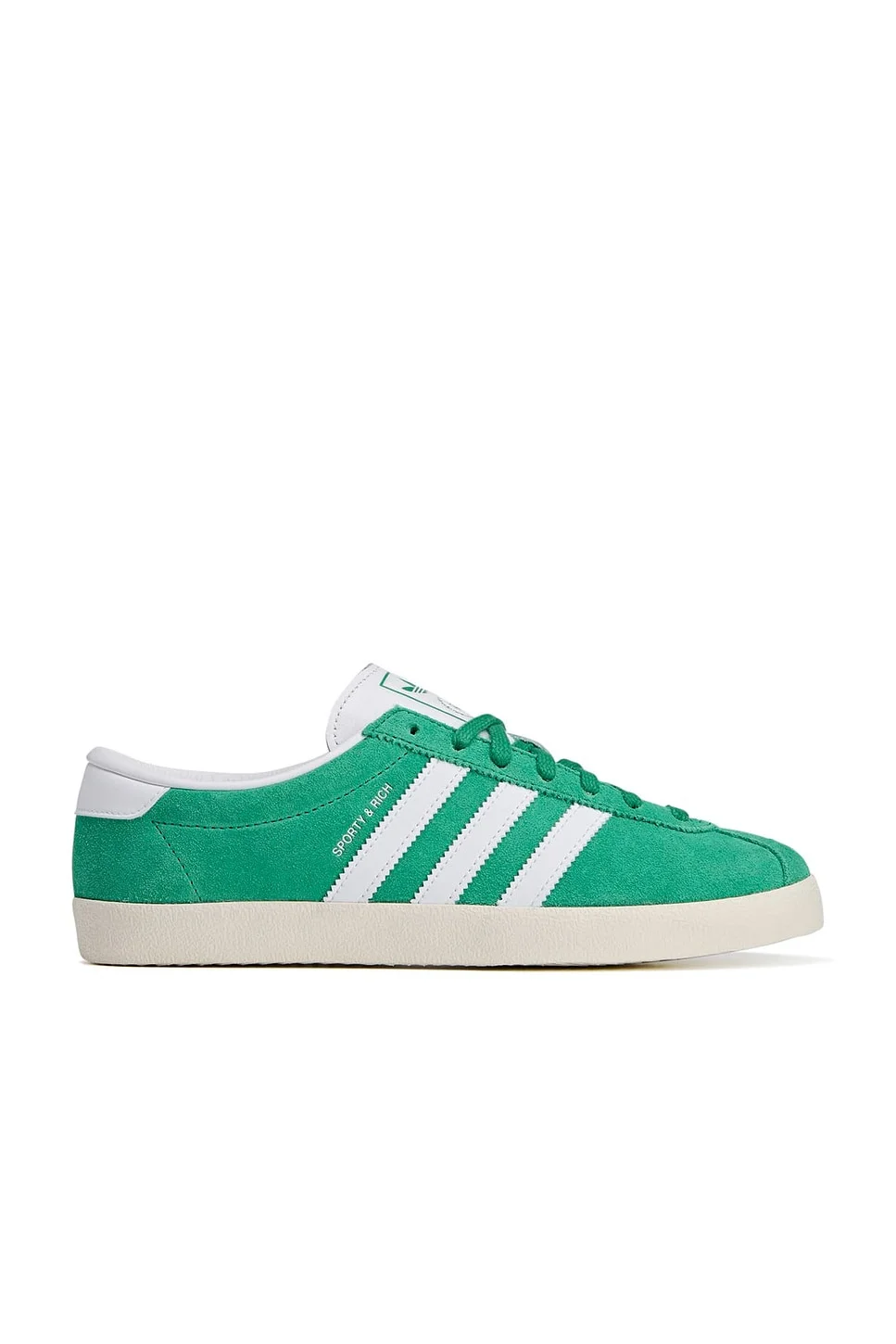 - Suede upper with leather trim and rubber sole - Lace-up front - adidas x Sporty & Rich co-branding throughout - Removable 'Racquet' key ring - Collapsible construction that makes it light and comfortable - Additional laces included - Revolve Style No. ADIO-MZ358 - Manufacturer Style No. JP8560