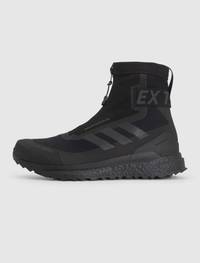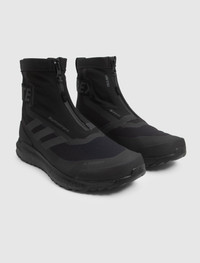 High top sneaker. Mesh upper. Sock-like silhouette. Fused overlay going around the toe, sidewall, and heel. Fused striped logo on the side. Zip closure on the forefoot. Elastic strap going around the back of the ankle. Boost midsole. Rubber outsole. - Mesh upper SKU: GZ9820