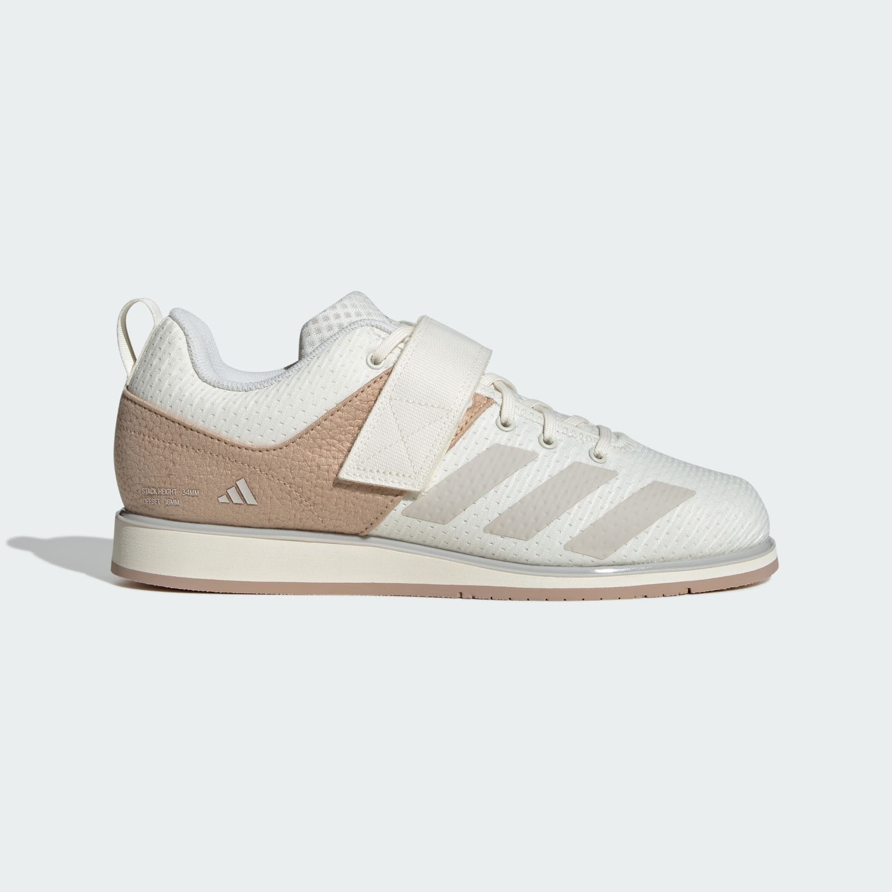 Versatile weightlifting shoes with an airy mesh upper. The ideal platform for all kinds of lifting, adidas Powerlift 5 weightlifting shoes are all about comfort and support. Lightweight but resilient, their upper includes open-mesh inserts for added breathability. A combination of strap and laces secures the midfoot, and a midsole wedge adds rock-solid stability under heavy loads. Underneath, a rubber outsole grips the mat to keep you planted. Details - Regular fit - Lace closure - Textile and synthetic upper - Hook-and-loop instep strap - Rubber outsole - Stack Height: 34 mm; Heel Lift: 15 mm - Imported - Product code: IH8239 - Product color: Off White / Wonder Alumina / Warm Sandstone