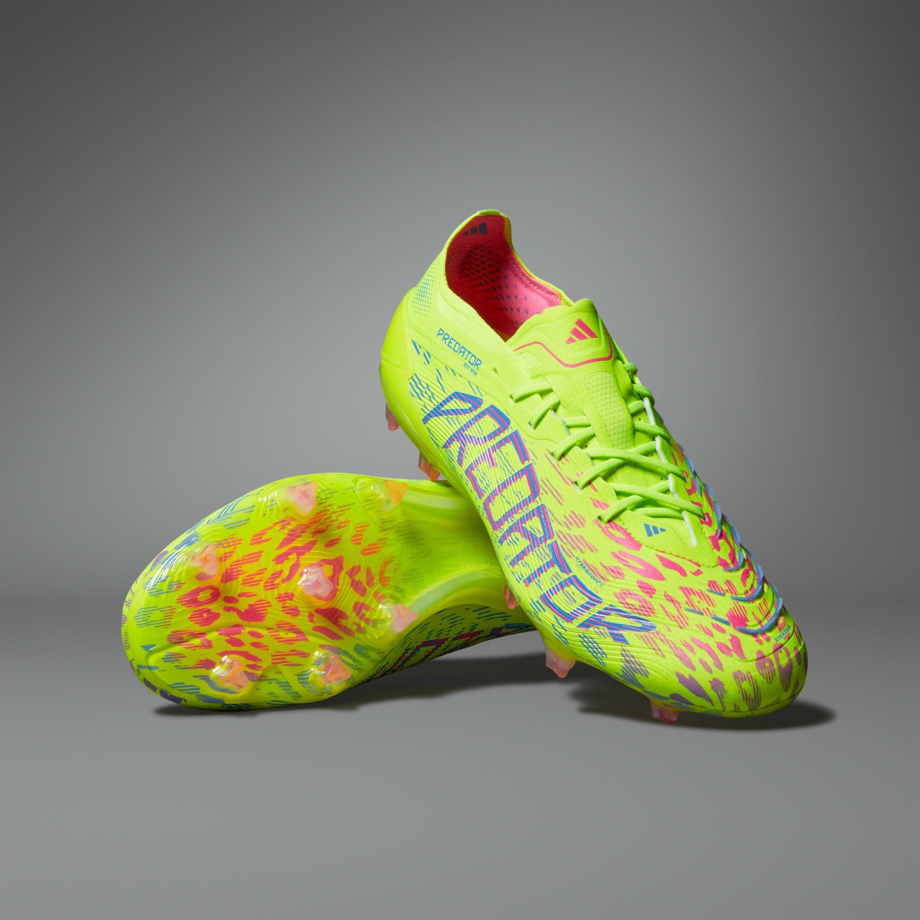 Grippy cleats for pinpoint shooting on firm ground. Go into every game knowing you'll score in adidas Predator Elite cleats crafted for goals. With strategically placed rubber Strikeskin fins on its forefoot, the flexible HybridTouch upper is designed to help you make perfect contact with the soccer. That Controlframe 2.0 firm ground outsole and adidas PRIMEKNIT collar are all about keeping you stable as you zero in on your target. Details - Regular fit - Lace closure - HybridTouch upper with Strikeskin elements - adidas PRIMEKNIT collar - Controlframe 2.0 firm ground outsole - Imported - Product code: JH6455 - Product color: Lucid Lemon / Lucid Pink / Blue Fusion