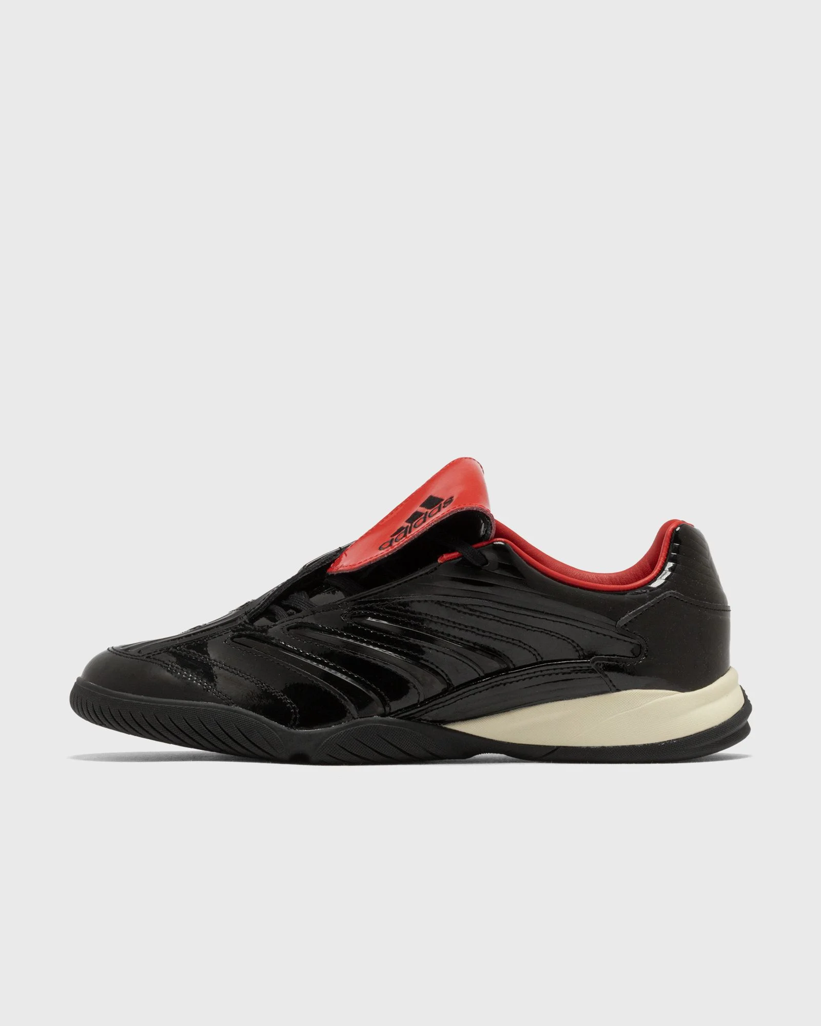 The Predator Sala shoes from adidas are specially designed for futsal and indoor soccer, with a breathable mesh upper and reinforced TPU overlays for comfort and durability. The grippy, non-marking rubber outsole provides excellent traction on smooth indoor surfaces, while the regular fit and lace-up closure allow for a customized fit. A reliable shoe for precise ball control, quick changes of direction, and dynamic play. - Mesh upper - TPU overlays - Rubber outsole Article number: IH7009 Gender: men Color: CBLACK/RED/CBLACK Material: 30% Rubber, 70% Synthetic/Textile