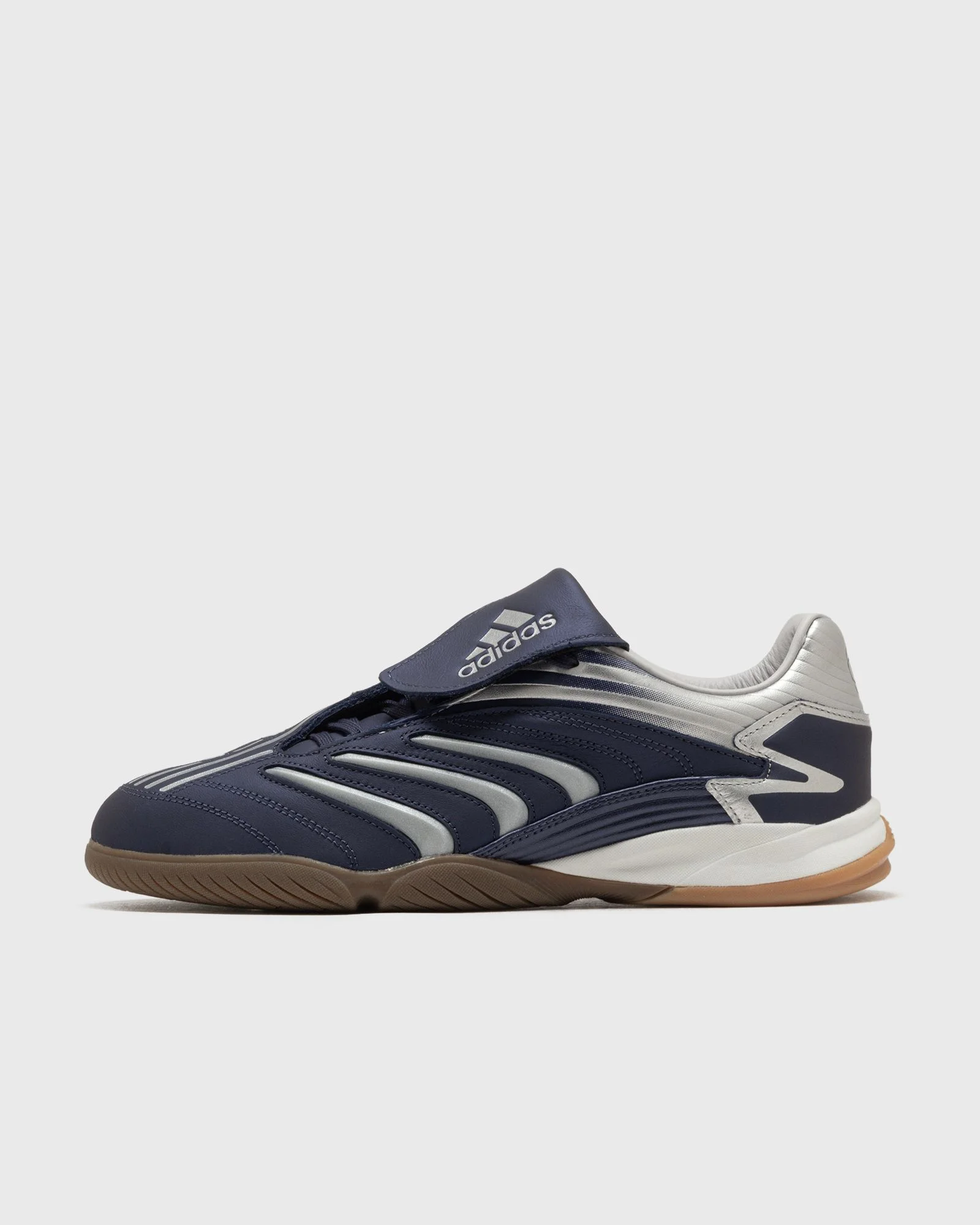 This shoe is a reinterpretation of the legendary adidas Predator shoe and is reminiscent of its soccer DNA with its upper made of high-quality leather with a subtle sheen and a fold-over tongue. The rubber outsole ensures stability on any terrain, while the leather lining provides additional comfort. Flowing lines and details in contrasting colors create a dynamic look. - Laces - Leather upper - Leather lining - Rubber outsole Article number: JR4227 Gender: men Color: SHANAV/SILVMT/GUM5 Material: 100% Leatehr/Synthetic