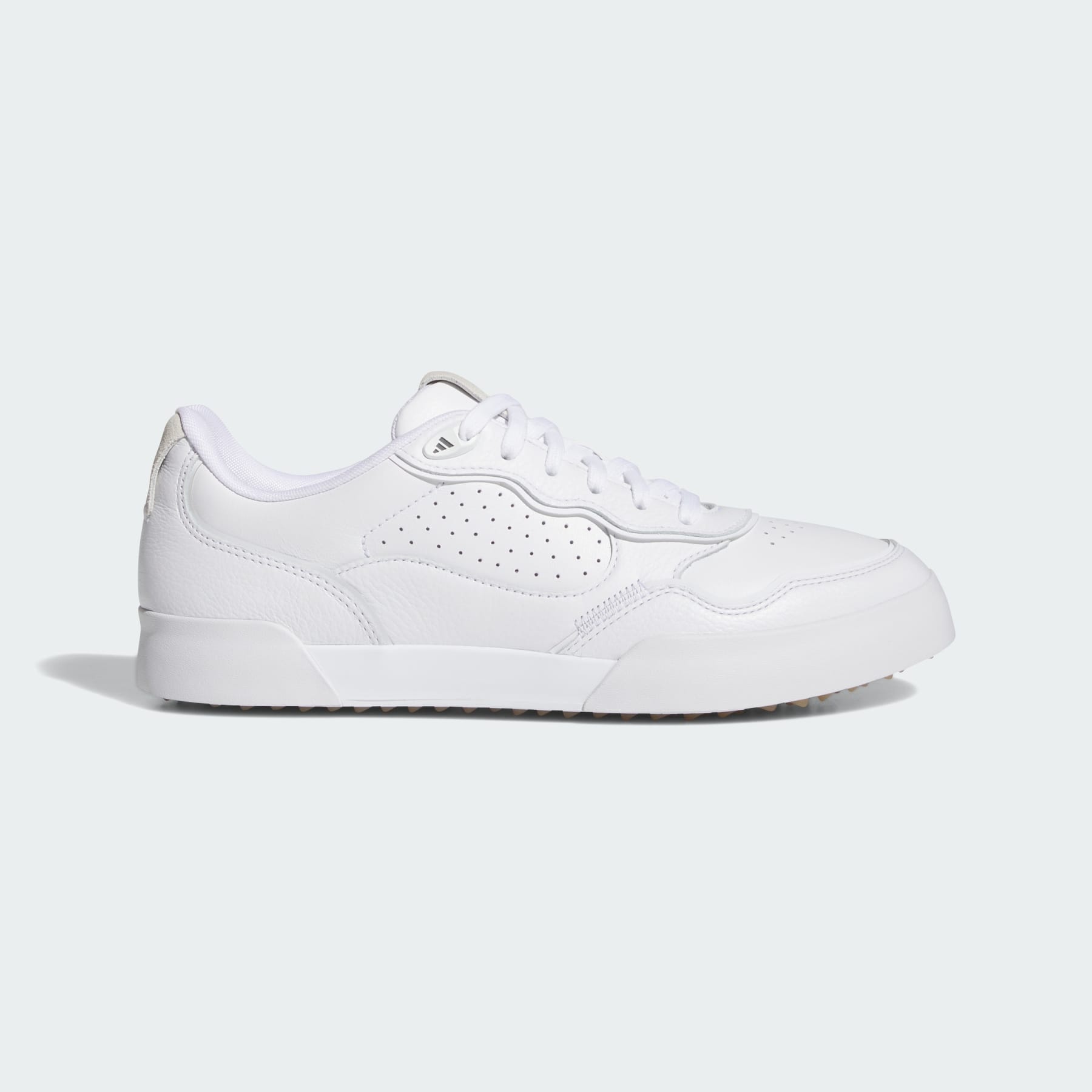 Versatile, spikeless golf shoes for casual rounds. Tee off with court-inspired style in these Retrocross Golf Shoes from adidas. Take on casual rounds in comfort with ultralight Lightstrike cushioning underfoot, then head to the clubhouse without missing a beat thanks to the spikeless Traxion outsole. Details - Regular fit - Lace closure - Leather upper - Textile lining - Lightstrike cushioning - Spikeless Traxion and Adiwear outsole - Imported - Product code: IH3396 - Product color: Cloud White / Grey Six / Gum