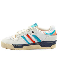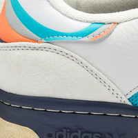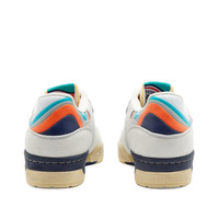 Extra Butter and adidas join forces this season to put a colourful stamp on the Rivalry low-top silhouette. Here, smooth neutral leather uppers are accented by retro orange and teal takes on adidas’ signature three stripes logo at the sidewall - while distressed detailing around the sole enhances the vintage vibe. - Leather Uppers - Suede Overlays - Rubber Outsole