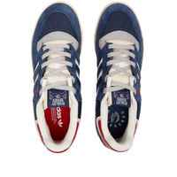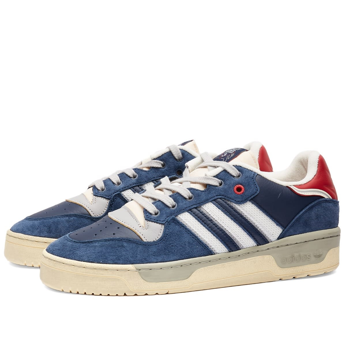 Showcasing their knack for reinventing classic silhouettes, New York sneaker boutique Extra Butter is back again in collaboration with adidas. Taking inspiration from 80s basketball sneakers, these Collegiate Navy Rivalry Low’s are a slip and go type trainer. Crafted with tumbled leather upper with touches of suede, hits of mesh accent the iconic three stripes. Maintaining the sneaker's comfortable and supportive profile, A two-tone aged midsole and outsole sit beneath. - Leather Upper - Textile Lining - Lace Closure - Rubber Outsole