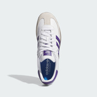 Terrace-inspired colors, classic Samba style. An indoor football staple adapted for skateboarding by adidas. The Samba ADV shoes feature an upgraded T-toe design with two layers of reinforcement in high-abrasion areas, allowing for feel, flick and durability. Known for its locked-in fit, the molded sockliner and signature tongue wings create a stabilizing fit, while the grippy cupsole ensures the feel and board control. Details - Regular fit - Lace closure - Suede and leather upper - Textile lining - Molded sockliner - Rubber cupsole - Imported - Product code: IE6613 - Product color: Cloud White / Collegiate Purple / Gold Metallic