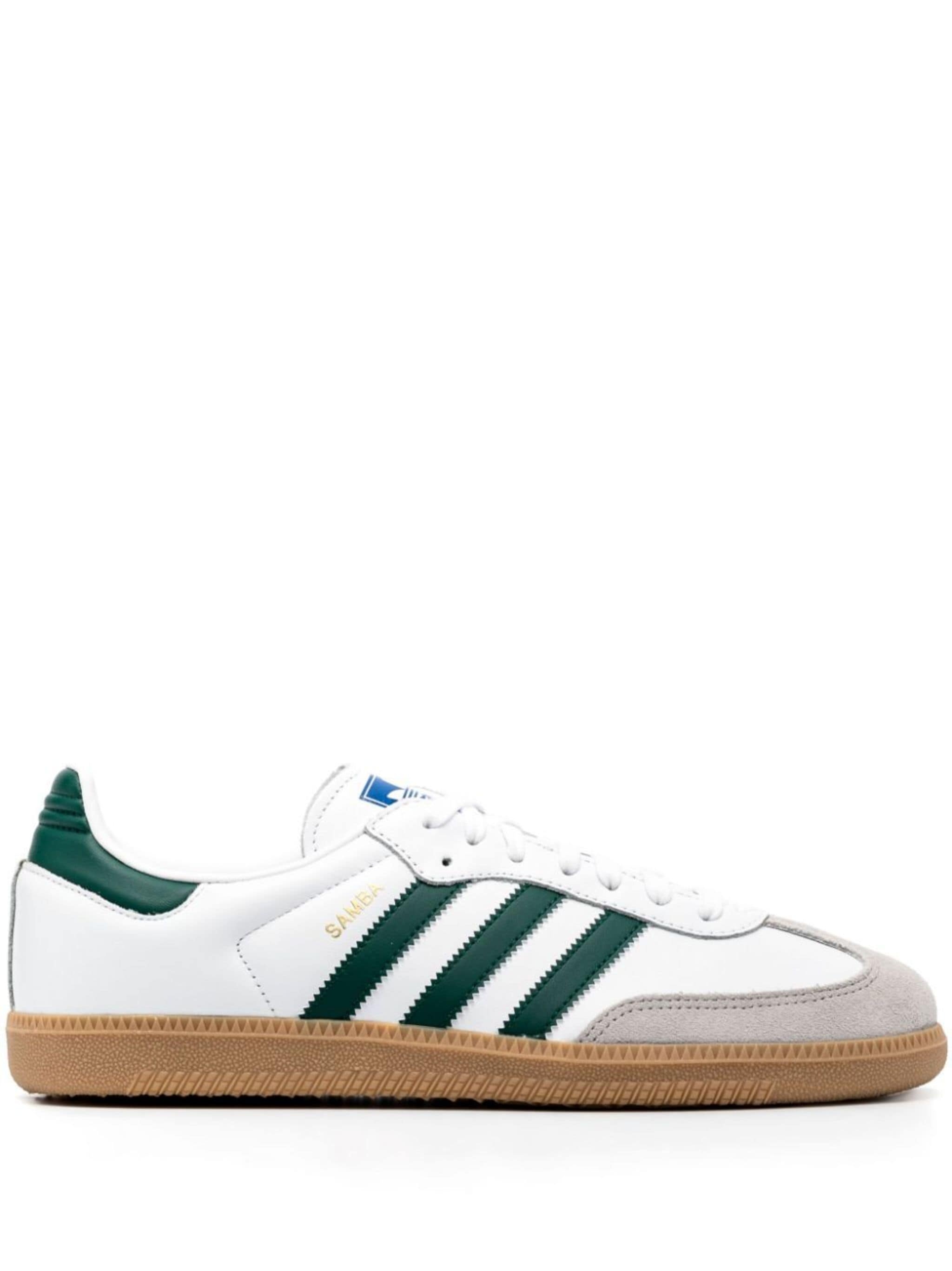 white leather suede panelling signature 3-Stripes logo logo stamp at side contrasting heel counter round toe front lace-up fastening logo-print tongue branded insole gum-rubber sole These styles are supplied by a premium and authenticated sneaker marketplace. Stocking only the most sought-after footwear, they source and curate some of the most hard to find sneakers from around the world. Size & Fit Model Measurements: Bust: 0cm Height: 0cm Hips: 0cm Waist: 0cm Fabric and Care Designer Style ID: IE3437 Designer Colour: Collegiate Green/White Composition: Sole: Rubber 100%; Outer: Suede 100%, Leather 100%; Lining: Fabric 100%