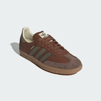 A mixed-material take on the iconic Samba. A classic reimagined. Steeped in soccer history, these Samba OG shoes pay homage to the iconic trainer while updating it for today. Felt-like 3-Stripes, contrast stitching on the heel tab and a hairy suede T-toe give them a crafty look while the metallic-gold Samba logo and low profile stay true to the original. Details - Regular fit - Lace closure - Leather, hairy suede and nubuck upper - Textile lining - Rubber outsole - Imported - Product code: IE9122 - Product color: Preloved Brown / Olive Strata / Earth Strata