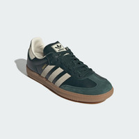 Heritage shoes with a master mix of suede and leather. Inspired by the original indoor soccer training shoe, these Samba OG shoes still have it after more than 70 years. The leather upper, serrated 3-Stripes and reinforced toe stay true to the adidas original. Add in suede accents and heel patches, and you have a modern classic. Details - Regular fit - Lace closure - Suede and leather upper - Textile lining - Gum rubber outsole - Imported - Product code: ID1483 - Product color: Shadow Green / Cream White / Gold Metallic