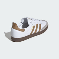 SAMBA ORIGINALS Born on the pitch, the Samba is a timeless icon of street style. This silhouette stays true to its legacy with a tasteful, low-profile, soft leather upper, suede overlays and gum sole, making it a staple in everyone's closet - on and off the pitch. Details - Regular fit - Lace closure - Full grain leather upper with gritty suede and gold foil details - Synthetic leather lining; Gum rubber cupsole - Gum rubber midsole - Imported - Product code: JH8796 - Product color: Cloud White / Brown Desert / Clear Granite