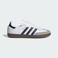 SAMBA ORIGINALS Born on the pitch, the Samba is a timeless icon of street style. This silhouette stays true to its legacy with a tasteful, low-profile, soft leather upper, suede overlays and gum sole, making it a staple in everyone's closet - on and off the pitch. Details - Regular fit - Lace closure - Full grain leather upper with gritty suede and gold foil details - Synthetic leather lining; Gum rubber cupsole - Gum rubber midsole - Imported - Product code: JH8795 - Product color: Cloud White / Night Indigo / Clear Granite