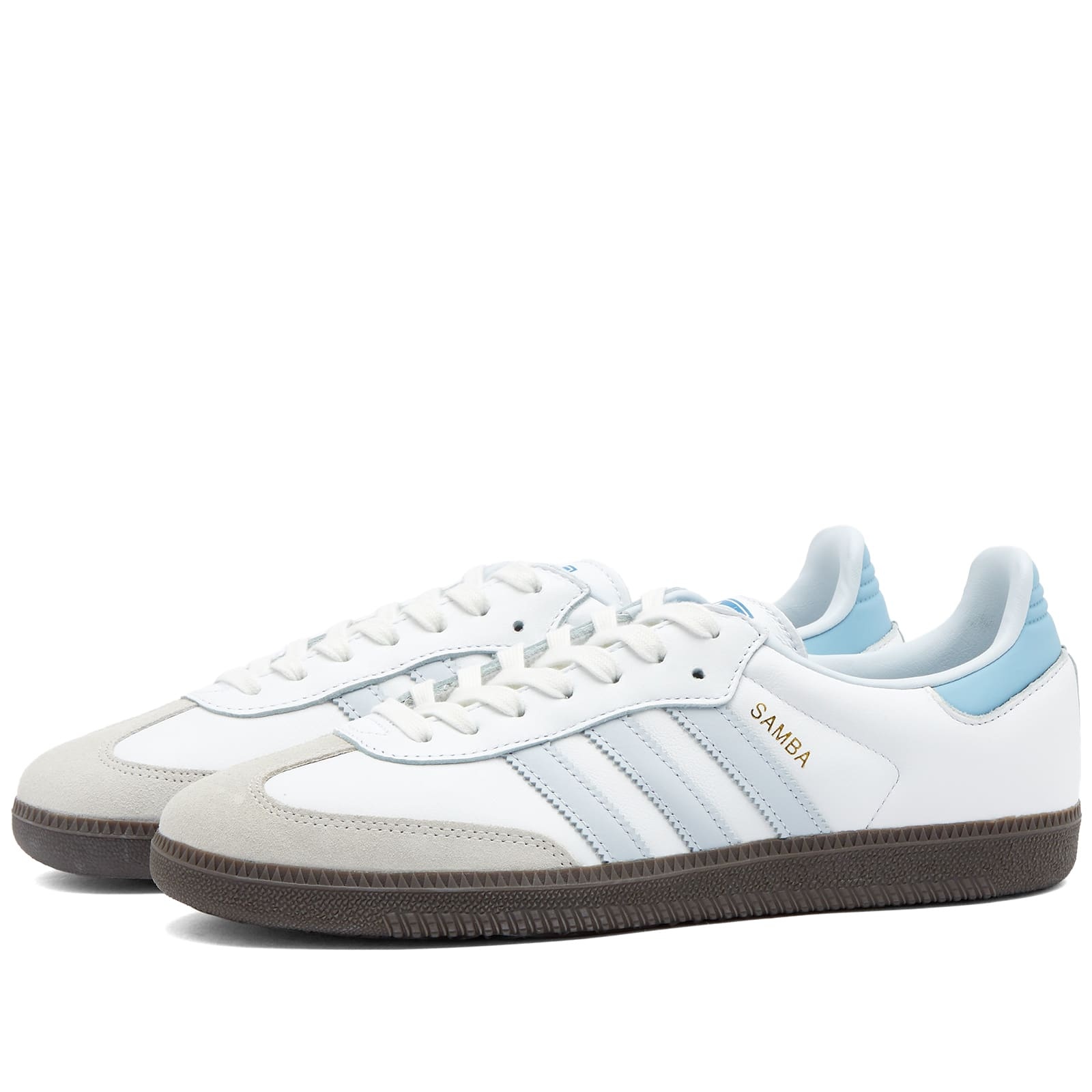 Back in 1949, the Adidas Samba sneaker burst onto the scene, a game-changer designed to empower football players to conquer even the iciest training grounds. Fast forward to today, and the legacy evolves with the all-new Samba OG. This isn't just a shoe; it's a timeless icon that effortlessly blends streetwear with sporty vibes together. Imagine the same legendary leather uppers that started it all, now accompanied by those unmistakable 3-Stripe wonders in light blue. - Leather Uppers - Suede Overlays - Tongue Branding - Printed Graphics - Rubber Outsole