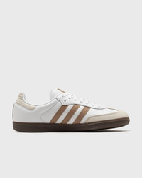 The Samba from adidas is no longer just what it originally was: a soccer shoe. The original model was designed in the late 1940s by adidas founder Adi Dassler. These were specially developed to give footballers more grip when they had to play on an ice-covered pitch. Since then, the Samba has become an integral part of the streetwear scene. This version comes with a smooth leather upper, a suede toe cap and a reinforced rubber sole. - Lace-up fastening - Leather upper and suede toe cap - Textile lining - Rubber outsole Article number: JR0912 Gender: men,women Color: FTWWHT/CARDBO/GUM5 Material: 30% Rubber, 70% Leather
