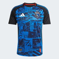 A Quakes performance jersey with attitude, made with recycled materials. Rock the pitch in San Jose Earthquakes style. Displaying a punk band poster-style collage of photos, lyrics and headlines, this adidas authentic soccer jersey fuses Quakes history with the Bay Area's rebellious music scene. Backstage, moisture-managing AEROREADY helps you tear up the field. Taking the spotlight, a heat-applied badge and pair of standout sign-offs have the final word. This product is made with 100% recycled materials. By reusing materials that have already been created, we help to reduce waste and our reliance on finite resources and reduce the footprint of the products we make. Details - Slim fit - Crewneck - 100% polyester (recycled) - AEROREADY - Side mesh panels - San Jose Earthquakes heat-applied crest - Imported - Product code: IV9893 - Product color: Black