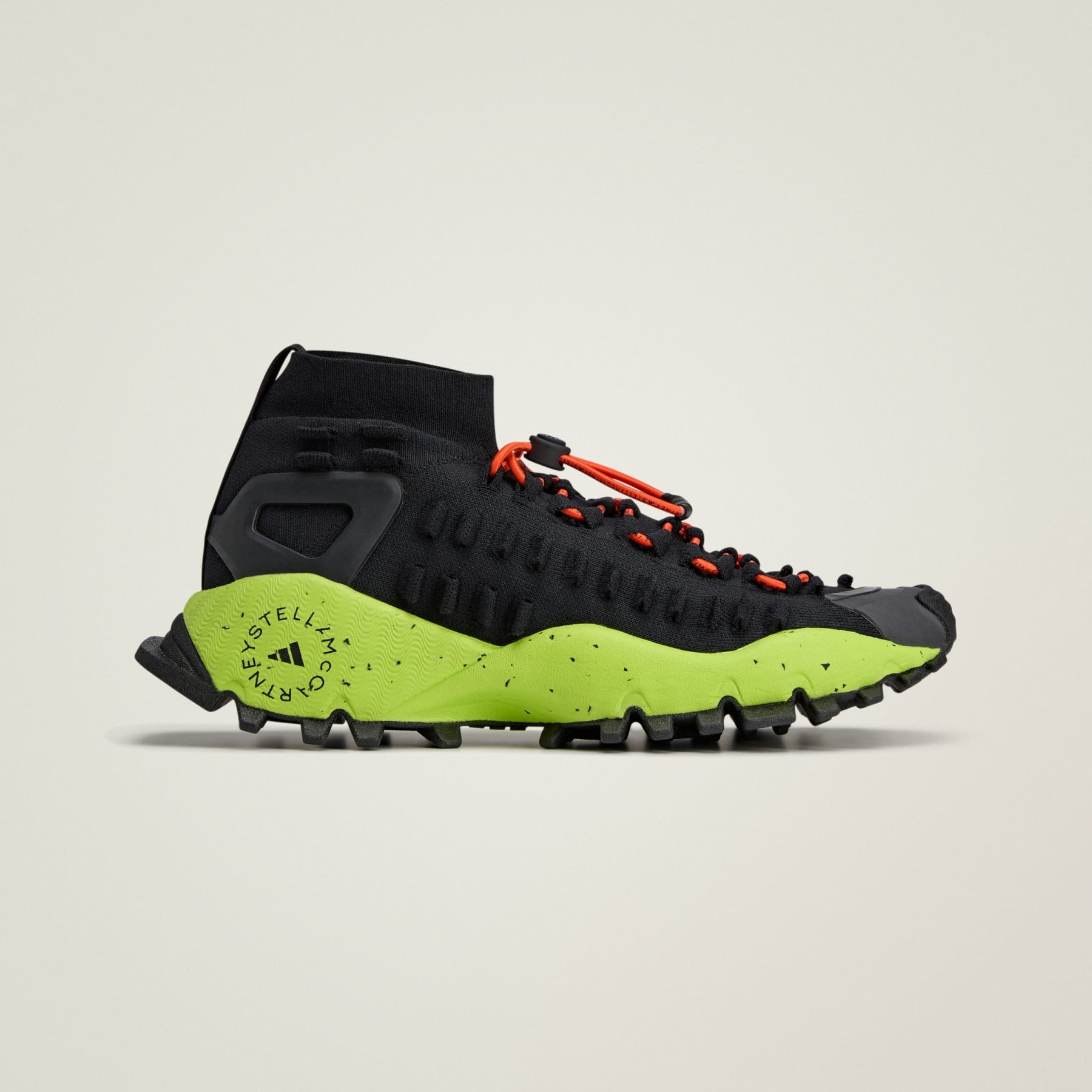 Vegan hiking shoes made in part with recycled materials. The evolution of one of adidas by Stella McCartney's most innovative hiking shoes, the Seeulater 2 makes no compromises with their design. They were made for unpredictable terrain — with a rugged, durable outsole that lets you traverse across rock fields with a sure foot or continue confidently on the slick path. The ultra-comfortable EVA foam underfoot provides cushioning underfoot, so even when your legs start to burn, you feel the energy to push through and to the top. This product features at least 20% recycled materials. By reusing materials that have already been created, we help to reduce waste and our reliance on finite resources and reduce the footprint of the products we make. Details - Regular fit - Speed lace closure - Textile and synthetic upper - Textile lining - EVA foam midsole - Rubber outsole - Contains at least 20% recycled content - Vegan alternative - Imported - Product code: JH8944 - Product color: Core Black / Solar Green / Active Orange