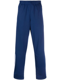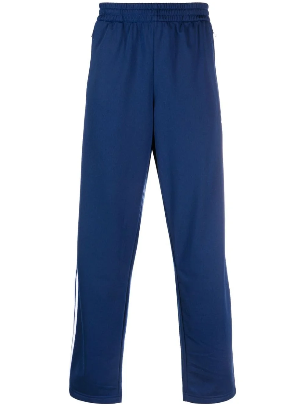 signature 3-Stripes logo trousers Highlights - Electric blue - Signature 3-stripes - Elasticated waistband - Short side slits - Two side zip-fastening pockets - Straight hem Imported Composition Recycled Polyester 100% SIZE & FIT Model measurements Height 6 ft 2 in(1.87 m) Bust/Chest 36.41 in(92.5 cm) Hips 37 in(94 cm) Waist 29.52 in(75 cm) FittingInformation Designed for a relaxed straight leg, allowing a comfortable and loose fit over the leg Adjust this piece’s waistband to your preference using the drawstring Made from a midweight non-stretch fabric, this piece offers minimal elasticity when worn This piece fits true to size – take your usual size Washing instructions Machine Wash
