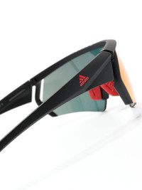 SP0063 shield-frame sunglasses Highlights - Black/red - Acetate - Shield frame - Multicolour mirrored lenses - Uv-protective lenses - Lens decal - Half-rim design - Nose pads - Logo print at the arm - Straight arms - Curved tips - These glasses come with a protective case. Made in Italy Composition Acetate 100% SIZE & FIT Measurement Arm Length 5.51 in(14 cm) Bridge Width 0.78 in(2 cm) Lens Diameter 5.11 in(13 cm) Total Width 5.51 in(14 cm)