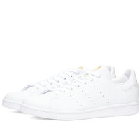 For over 50 years, the Stan Smith shoes have held their place as an icon. Crafted with a fresh design as part of adidas’ commitment to use only recycled polyester by 2024. Featuring a vegan upper and an outsole made from rubber waste. Finished with contrasting gold branding on the heel tab and tongue. - Synthetic Lining - Rubber Outsole - Vegan
