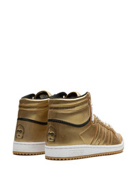 Top Ten Hi "Star Wars" sneakers Popularised by basketball stars of the eighties, the Adidas Top Ten sneakers have crossed over from the sidelines and into the mainstream. Crafted from leather, this Star Wars iteration arrives in a striking gold-tone colourway with slogan prints to the rear and C-3PO motifs throughout. The boast the signature perforated toebox and 3-stripes logo to the side for a recognisable appeal. Highlights - Gold-tone - Leather - Metallic finish - Signature 3-stripes logo - Logo patch at the tongue - Slogan print to the rear - Graphic print to the rear - Perforated toebox - Front lace-up fastening - Flat rubber sole - These styles are supplied by a premium sneaker marketplace. stocking only the most sought-after footwear, they source and curate some of the most hard to find sneakers from around the world. Imported Composition Sole: Rubber 100% Lining: Fabric 100% Outer: Patent Leather 100%